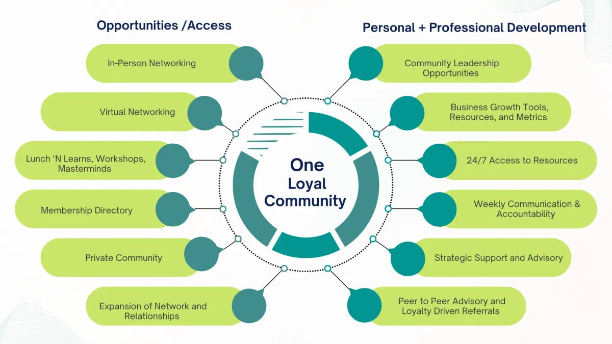 A community of individuals who appreciate and thrive in relationship-first connections that allows for high impact networking, intentional connections, peer advisory, referrals & collaborations that are developed from trust, consistency, and clarity.