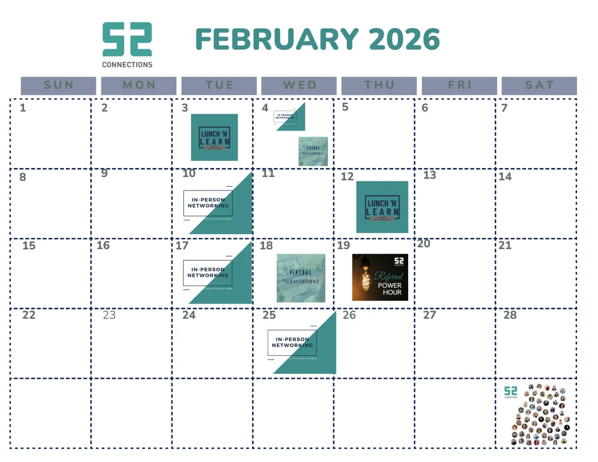 52 Connections is a hybrid high impact networking, peer to peer advisory, and referral community.